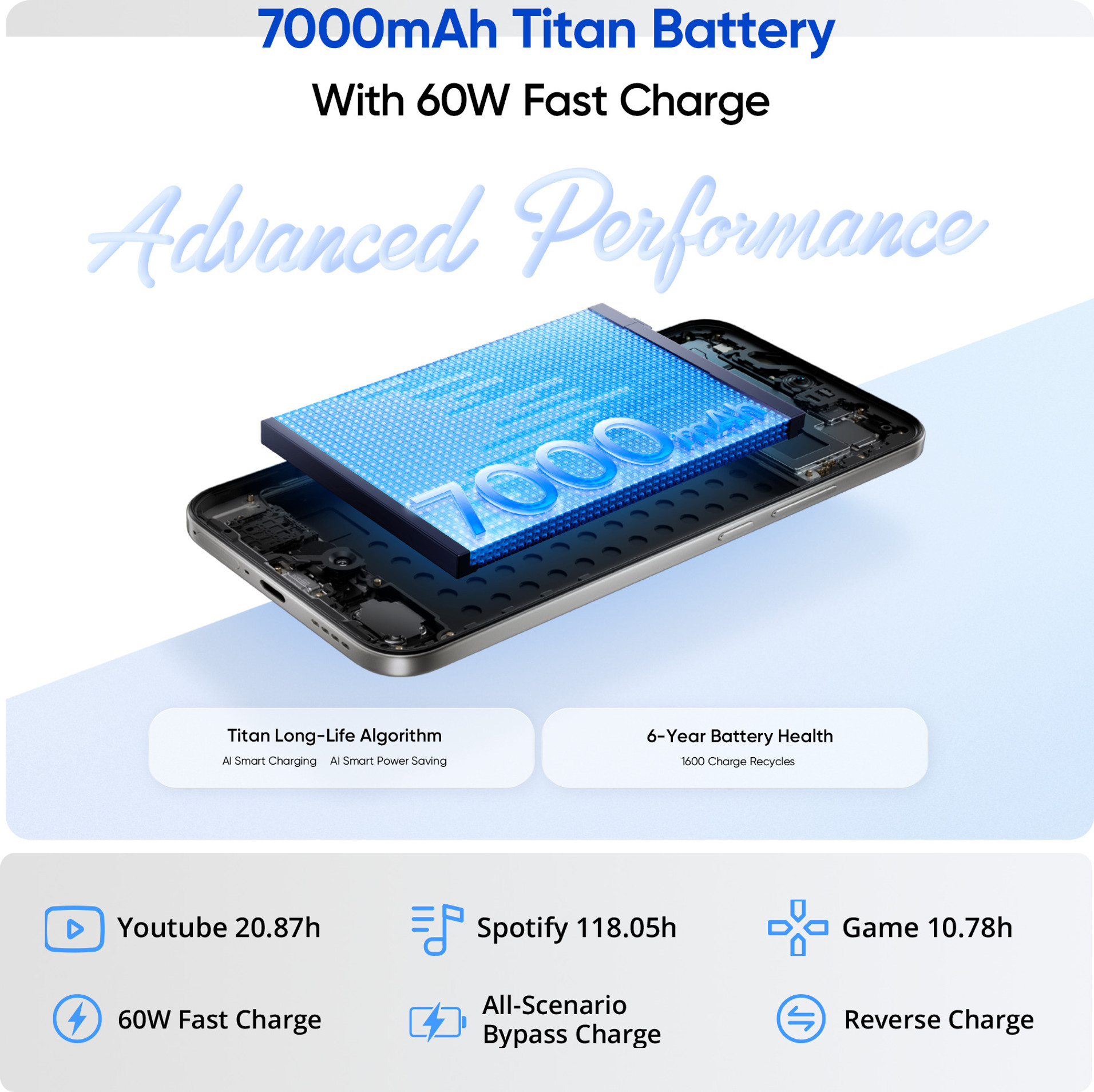 • סוללת 7000mAh (Silicon‑Carbon) – חיי סוללה ארוכים מאוד לשימוש יום‑יומי ואינטנסיבי